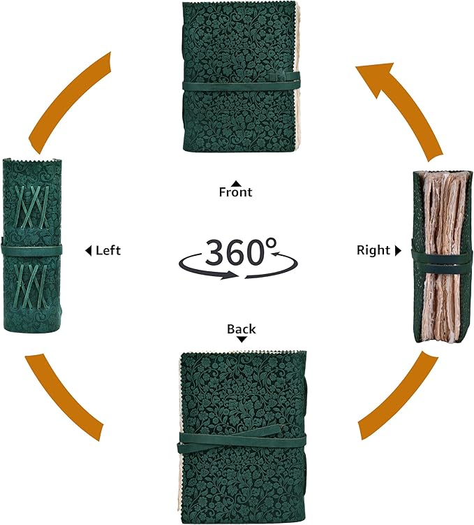 - Genuine Leather Journal: Luxurious full-grain leather cover, naturally tanned for an authentic feel. Embrace the craftsmanship with this durable, Floral embossed leather notebook, ideal for writers, travelers, and journal enthusiasts seeking a premium writing experience.