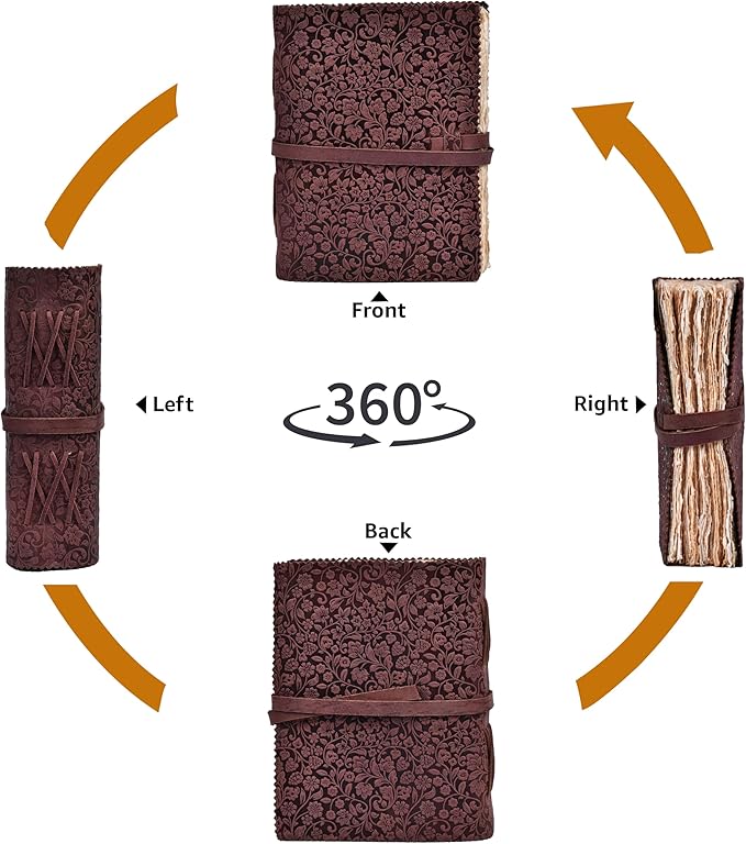 - Genuine Leather Journal: Luxurious full-grain leather cover, naturally tanned for an authentic feel. Embrace the craftsmanship with this durable, Floral embossed leather notebook, ideal for writers, travelers, and journal enthusiasts seeking a premium writing experience.