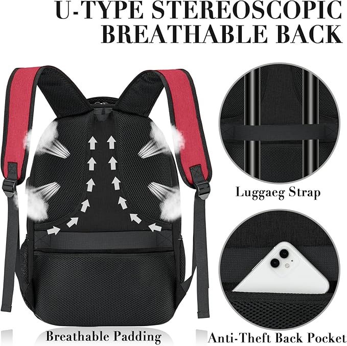 Travel Laptop Backpack for Woman and Men, School Backpack for Teens with USB Charging Port, Waterproof College Back Pack for 15.6 IN Laptop Backpack, Adult Business Computer Travel Backpack, BlackRed