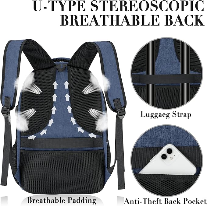 - ★USB PORT &ANTI THEFT DESIGN:With built in USB charger outside and built in charging cable inside,this USB backpack offers you a more convenient way to charge your phone while walking. A luggage strap allows backpack fit on luggage/suitcase, slide over the luggage upright handle tube for easier carrying. With a hidden anti theft pocket on the back protect your valuable items from thieves, please be assured that the use of