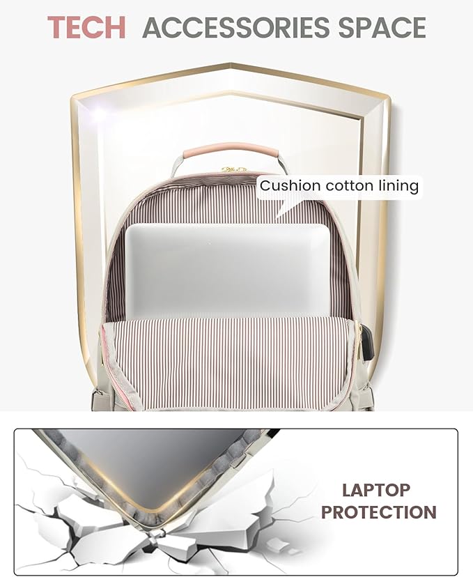 - 【LARGE CAPACITY】This backpack purse looks delicate & stylish, but can hold everything you need on the go. The travel backpack has multiple compartments to hold the laptops, iPads, phones, charger, binders, bottles, umbrellas, magazines, clothes, pens, wallets, and more.