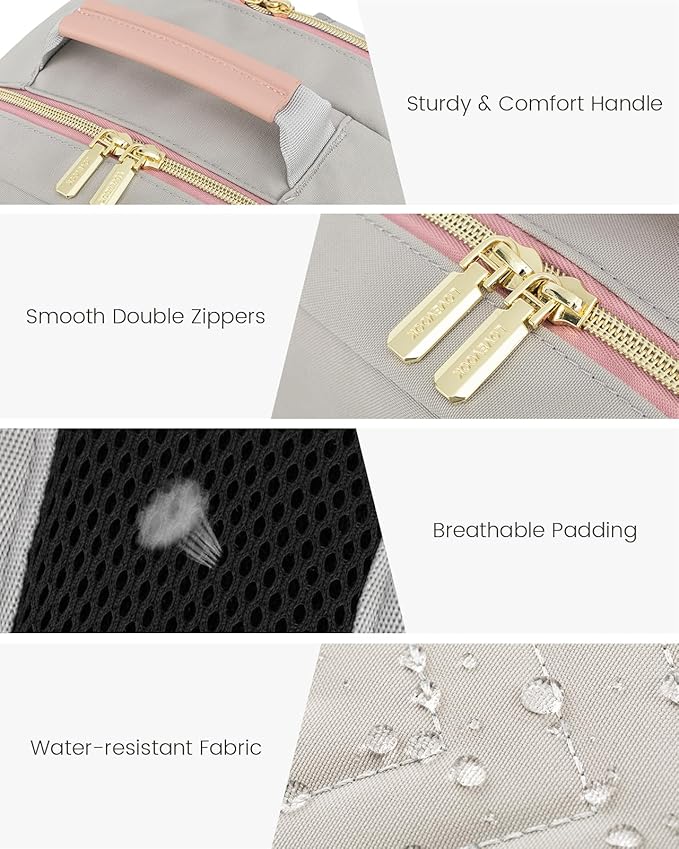 LOVEVOOK Laptop Backpack for Women, Travel Computer Work Bags with 17-inch Laptop Compartment, College School Student Bag Teen Backpacks For Girls, Outdoor Carry On Backpack Purse, Grey Pink