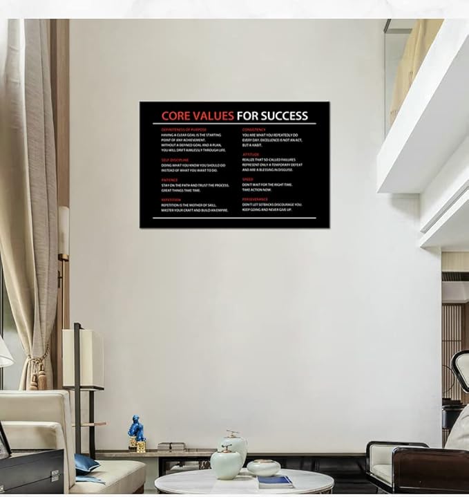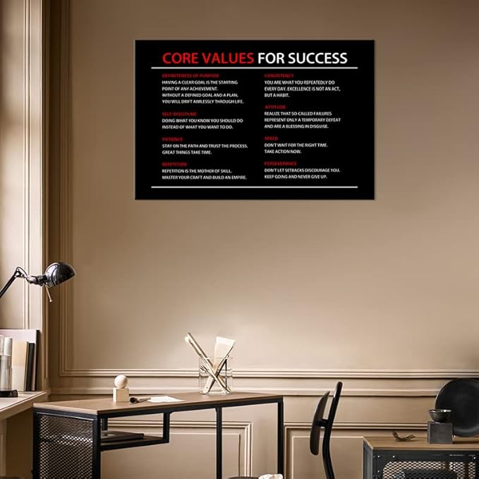 Core Values Quote Inspirational Canvas Painting Motivational Wall Art Poster Inspiring Positive Motivational Framed Artwork Prints Picture for Living Room Office [24''Wx 36''H]