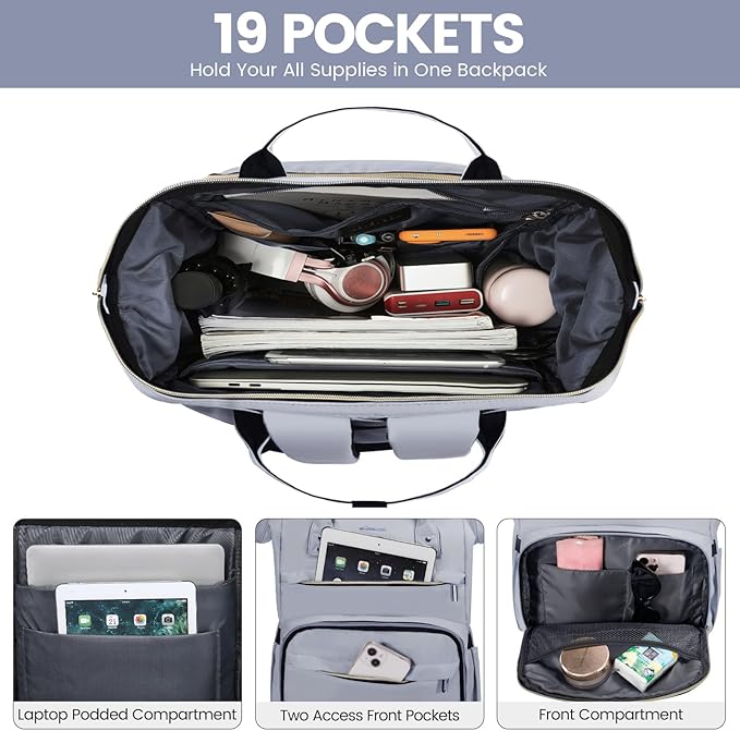 - 🎒【Wide Open Teacher Nurse Backpack Work Bags】: Reinforced edges and steel frame of the main compartment keep the perfect shape of the bag,the top opens,you can see your things easily and access quickly,most easily organized.Teacher backpack with laptop compartment,nurses bags and totes for work,work backpack for women professional.