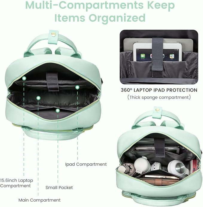 LOVEVOOK 15.6 Inch Laptop Backpack for Women,Fashion Work Travel Backpack,Waterproof Day Pack Purse for Teacher Nurse Green