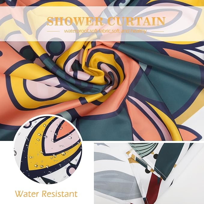 - Mid Century Shower Curtains: Bohemian geometric plants shower curtain adopts high-definition digital printing technology,the pattern is printed clearly with bright colors. The boho chic floral pattern can be perfectly matched with various bathroom styles,and the colorful bohemian floral shower curtain will brighten up your bathroom
