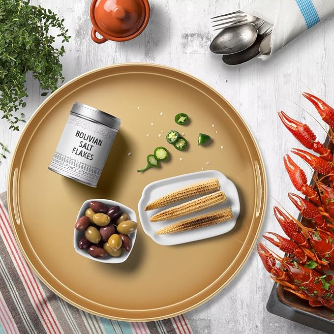 Gold Round Decorative Tray with Handles, 13" Versatile Serving Tray for Coffee Table, Ottoman, Ideal for Serving, Displaying, Organizing