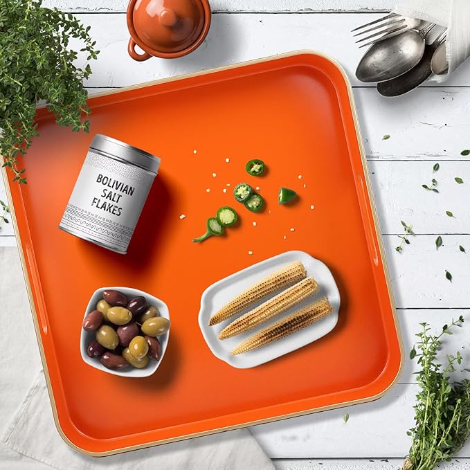 Orange Square Decorative Tray with Handles, 13"*13" Versatile Serving Tray for Coffee Table, Ottoman, Ideal for Serving, Displaying, Organizing