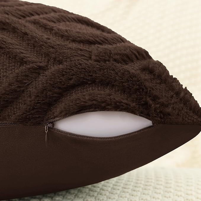 decorUhome Throw Pillow Covers 26x26 Inch Set of 2, Soft Plush Decorative Faux Fur Dark Brown Solid Couch Pillow Covers, Accent Farmhouse Neutral Square Euro Pillow Cases for Sofa Bed Living Room
