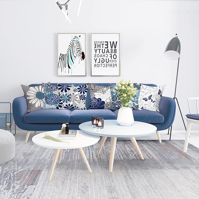 - Pillow Covers Set: Package contains 6 pieces of 16x16 inch modern pillow covers with different blue grey daisy patterns, perfect for indoor and outdoor decoration