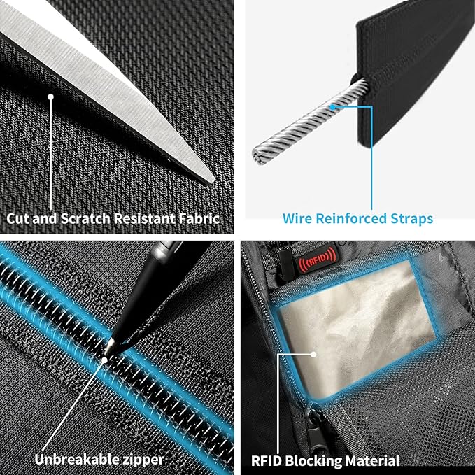 - 【Stainless Wire Mesh&Cut Resistant Straps】Built-in stainless steel wire mesh adds additional security level,as well as the scratch resistant and wear-resistant fabric,Puncture resistant double zipper---It helps prevent against luggage tampering.Steel wire reinforced straps helps prevent cut & run theft.