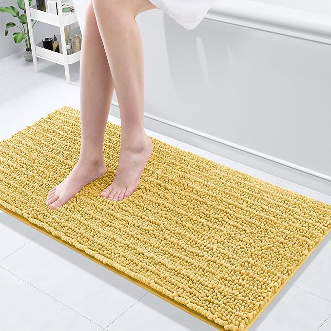 Arotive Luxury Chenille Bathroom Rug Mat, Extra Soft Thick Absorbent Shaggy Bath Rugs, Non-Slip Machine Wash Dry, Plush Bath Mats for Bathroom, Shower and Tub, 47x17, Yellow