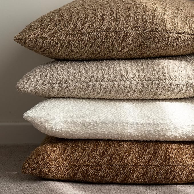Foindtower Pack of 2 Textured Boucle Throw Pillow Covers Accent Solid Pillow Cases Cozy Soft Decorative Couch Cushion Case for Chair Sofa Bedroom Living Room Home Decor, 18 x 18 Inch,White