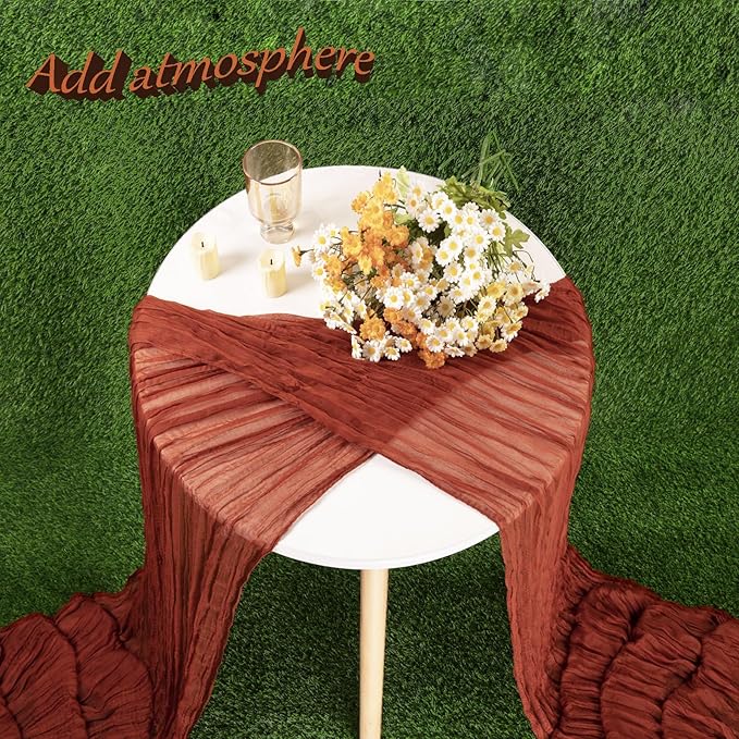 Cheesecloth Table Runner Boho Table Runner 13.3FT Long Terracotta Vintage Rustic Gauze Wedding Dining Table Decorations for Baby Shower Event Holiday Birthday Halloween Party Decorations