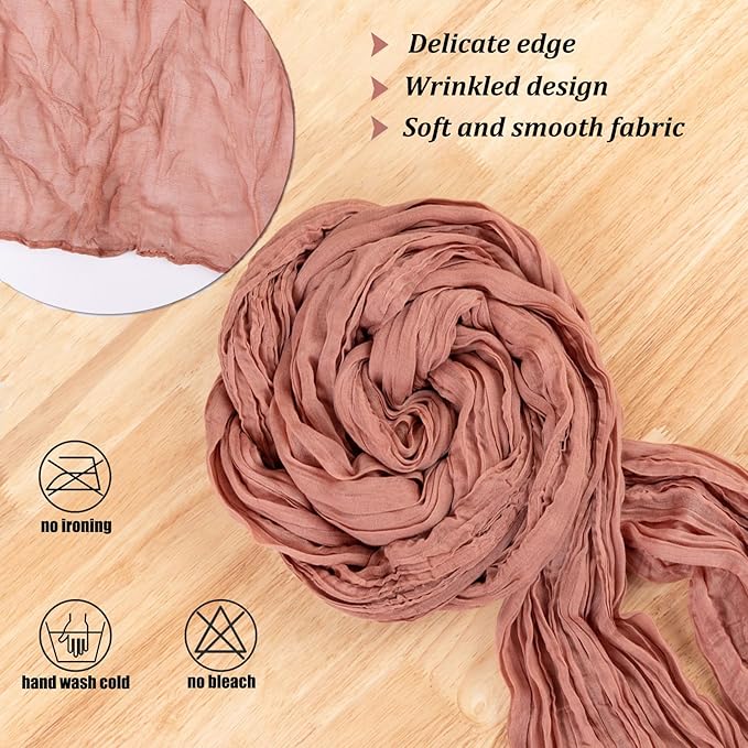 - Washing and care: These cheesecloth table runner are recommended to be hand washed in cold water, or machine washed in a laundry bag on gentle cycle; To maintain the wrinkle texture, please do not iron or use hot water, lay flat or hang to dry, which is more conducive to long-term maintenance these forms.