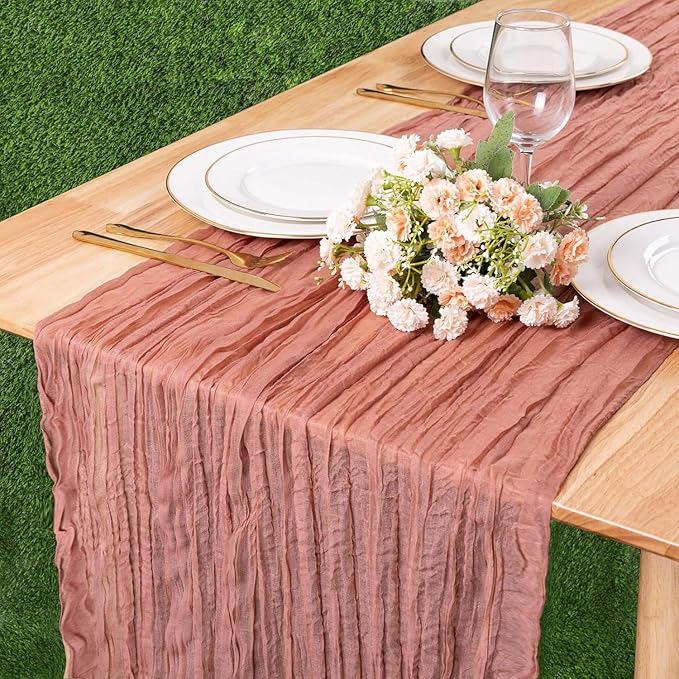 Cheesecloth Table Runner Boho Table Runner 13.3FT Long Vintage Rustic Dusty Blush Gauze Wedding Dining Table Decorations for Holiday Birthday Party Baby Shower Event Decorations