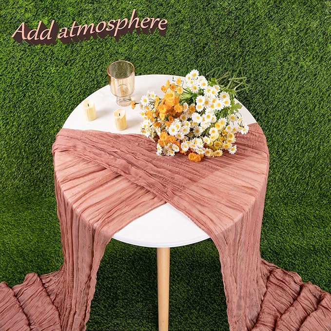 - Material: Cheesecloth table runner, made of natural cotton material, pleated design, fine workmanship, soft touch, comfortable fabric, elegant and fashionable, neat edges, clean appearance, not easy to wear or tear, keep in good condition for a long time.