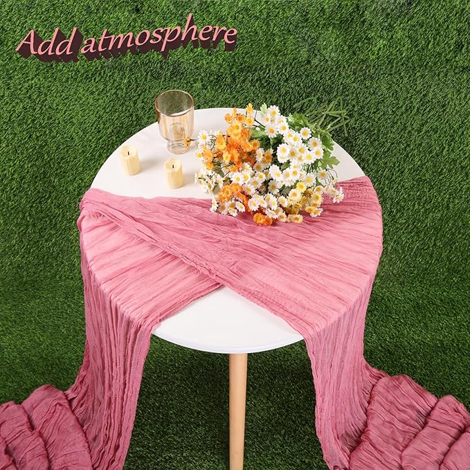 Crinkle Dusty Rose Cheesecloth Table Runner 13.3FT Long Boho Table Runner Rustic Gauze Wedding Dining Table Decorations for Holiday Birthday Party Baby Shower Event Decorations