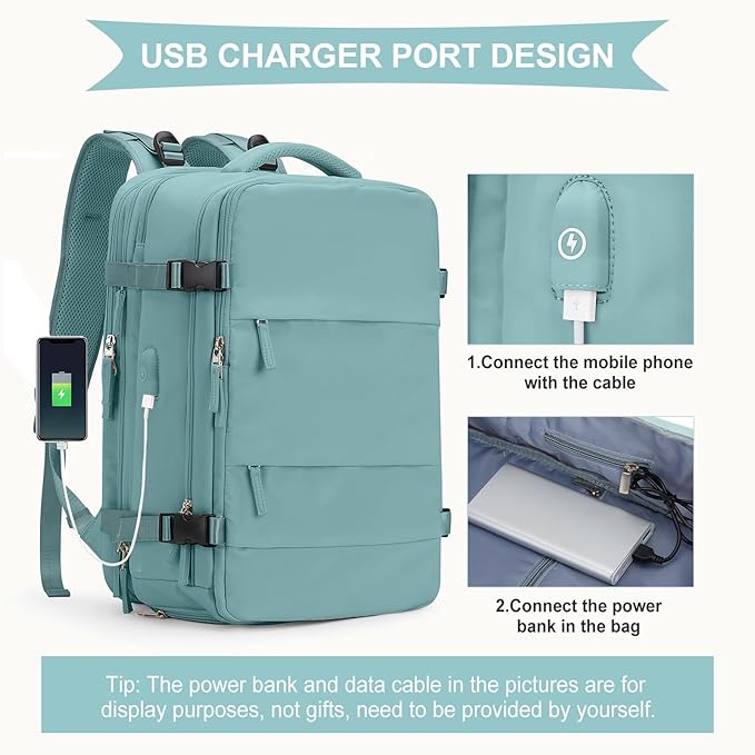 - 【USB Charging Port】Built-in charging port to charge your phone anytime, anywhere.Note: This backpack only provides conversion data line, you need to bring your own data line and power supply