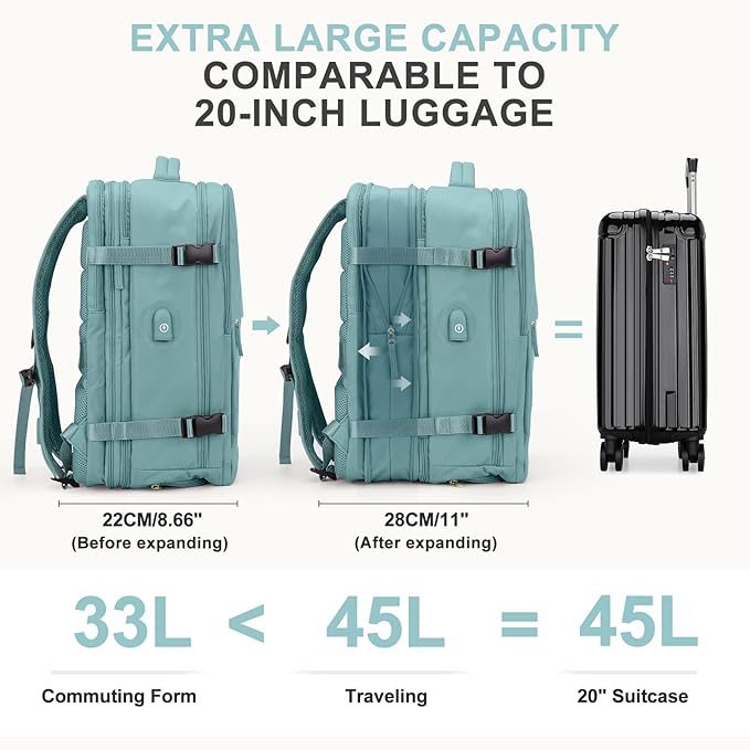 - 【Expandable Backpack】Increase capacity, improve comfort.This travel backpack has a hidden main compartment that can be expanded to open when needed, at your own pace.