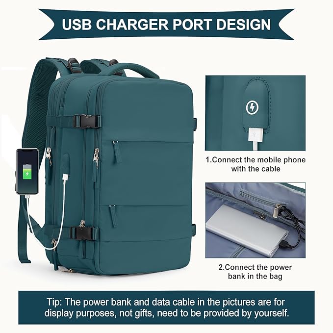 - 【USB Charging Port】Built-in charging port to charge your phone anytime, anywhere.Note: This backpack only provides conversion data line, you need to bring your own data line and power supply