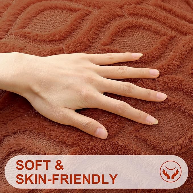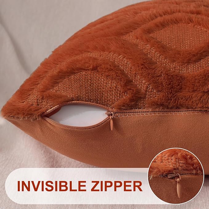 decorUhome Fall Throw Pillow Covers 16x16 Inch Set of 2, Soft Plush Decorative Faux Fur Rust Solid Couch Pillow Covers, Accent Farmhouse Neutral Square Euro Pillow Cases for Sofa Bed Living Room