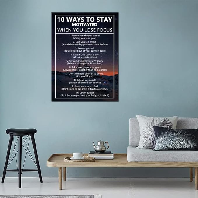 Inspirational Canvas Painting Wall Art for Office 10 Ways to Stay Motivated When You Lose Focus Motivational Wall Art Life Growth Poster Framed Artwork Prints Picture for Living Room [30''Wx 40''H]