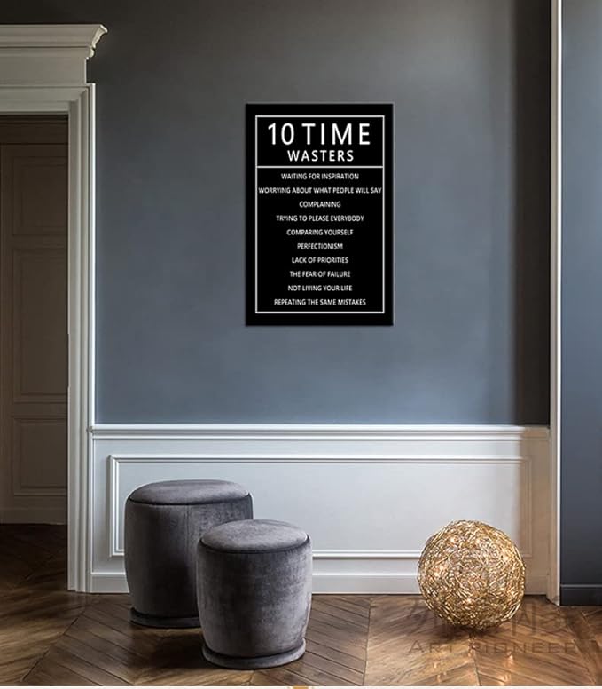 Inspirational 10 Time Wasters Wall Art for Office Motivational Positive Quote Canvas Poster Wall Decor Paintings Wooden Framed Artwork Living Room Bedroom Home Decoration Ready to Hang [24''W x 36''H]