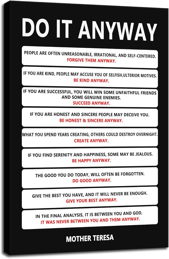 Do It Anyway Canvas Wall Art for Living Room Inspirational Mother Teresa Quote Poster Wall Decor Paintings Wooden Framed Artwork Bedroom Kitchen Home Decoration Ready to Hang[12''W x 18''H]