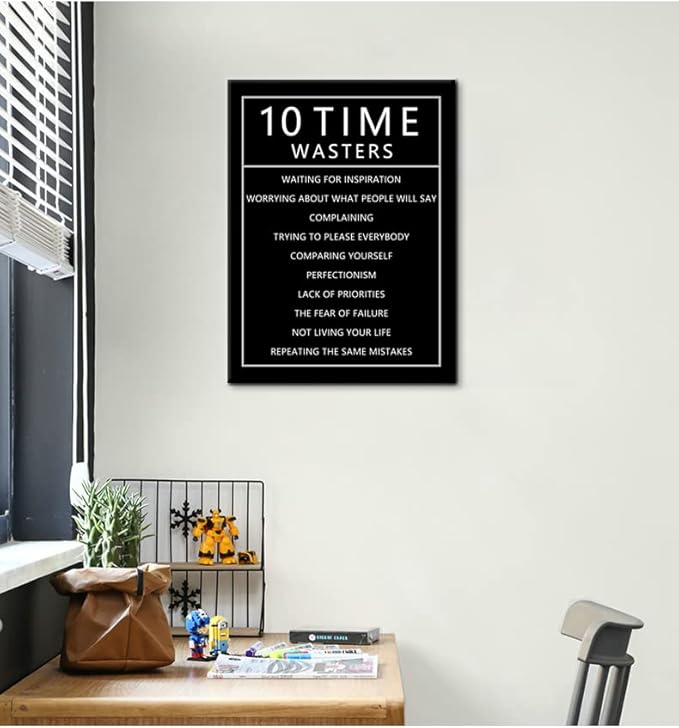 10 Time Wasters Inspirational Canvas Wall Art for Office Motivational Positive Quote Poster Wall Decor Paintings Wooden Framed Artwork Living Room Bedroom Home Decoration Ready to Hang [18''W x 24''H]