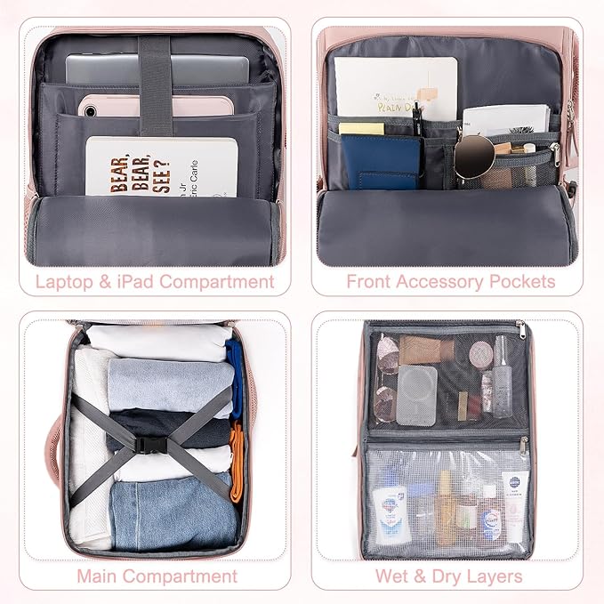 Travel Backpack for Women, Flight Approved Carry On Backpack with USB Charging Hole, Lightweight Travel Bag, Waterproof Causal Bookbag for College, Travel, Work