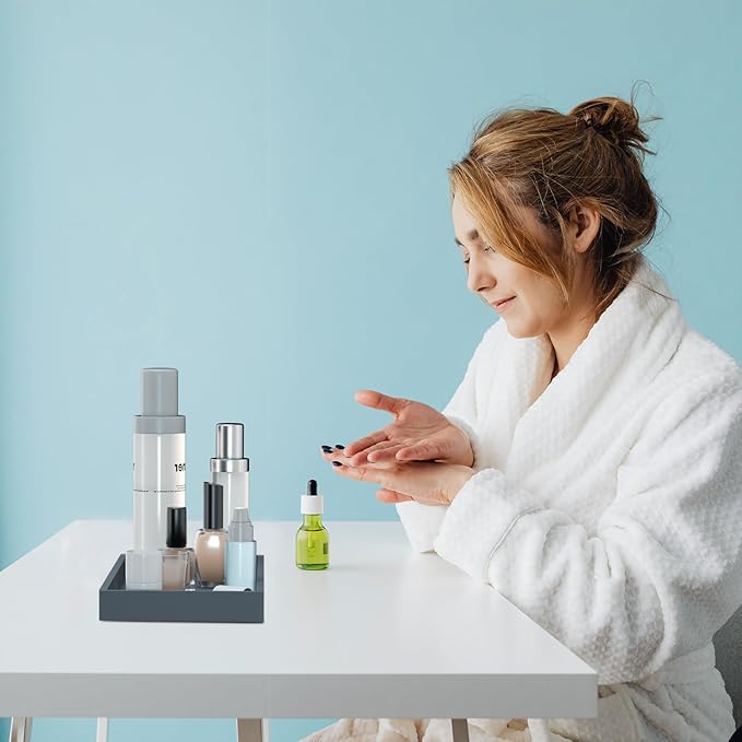 - 【MATERIAL】The silicone decorative tray bottom non-slip. Stays in place even when used on wet countertops. This decorative trays is perfect for usage in the shower, on bathroom counters, or over the tub.