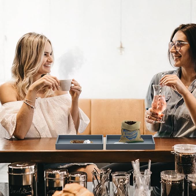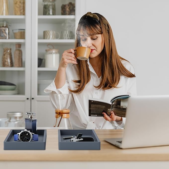 - 【PRODUCT SET SIZE】Shatterproof silicone bathroom trays set size. Small vanity tray: 7.8 x 3.9 inch. The serving tray takes up little space and is easy to move and carry. Serving trays ideal for storing decorations or various items.
