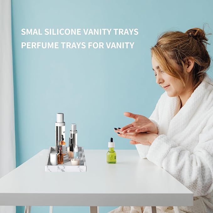 - 【PRODUCT SET SIZE】Shatterproof silicone bathroom trays set size. Small vanity tray: 7.8 x 3.9 inch. The bathroom counter tray takes up little space and is easy to move and carry. Bathroom vanity tray for storing decorations or various items.