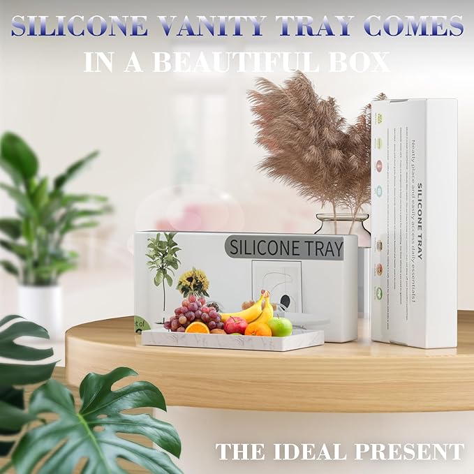 - 【SILICONE MATERIAL】The silicone small decorative tray bottom non-slip. Stays in place even when used on wet countertops. This counter top tray is perfect for usage in the shower, on bathroom counters or living room.