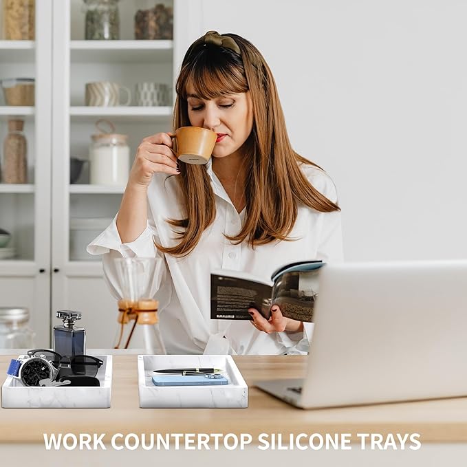 - 【WIDE APPLICATION】Silicone vanity trays bring order and beauty to your home decor. create the living surroundings more comfortable and elegant. Organizers Trays can be better applied in drawer, table, kitchen, bathroom, living room, bedroom washroom, indoor and outdoor. You can also design more usage scenarios you require.