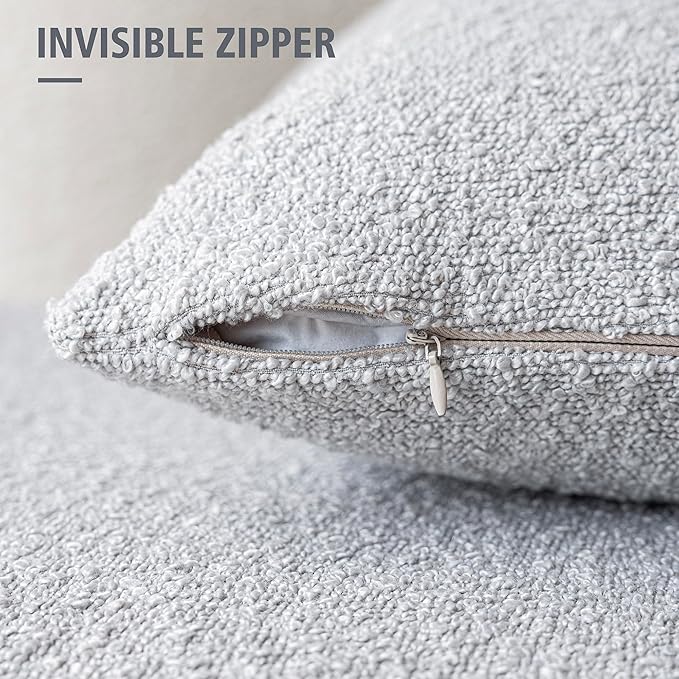 Foindtower Pack of 2 Textured Boucle Throw Pillow Covers Accent Solid Decorative Lumbar Pillow Cases Cozy Woven Couch Cushion Case for Sofa Bedroom Living Room Home Decor, 12 x 20 Inch,Light Grey