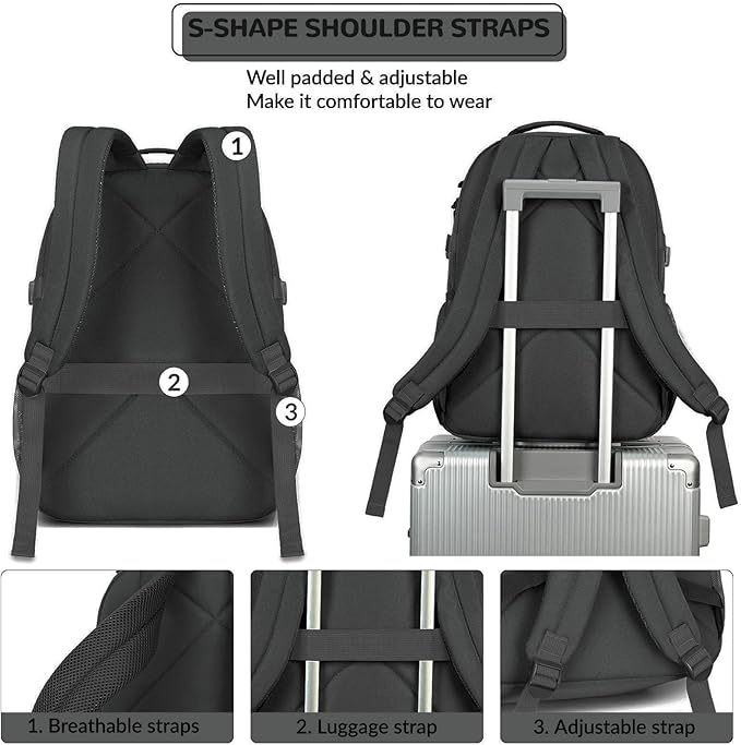 - [Comfortable] - The shoulder starp is adjustable, you can adjust the lenth that suits yourselves, and luggage strap allows backpack fit on luggage/suitcase, slide over the luggage upright handle tube for easier carrying.