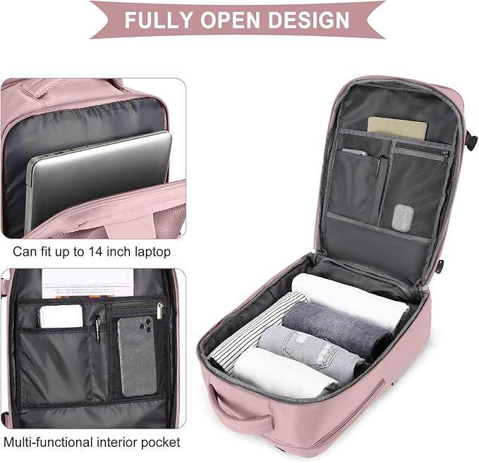 coowoz Travel Backpack For Women Men,Carry On Backpack,Hiking Backpack Waterproof Outdoor Sports Rucksack Casual Daypack travel essentials(Pink Purple)