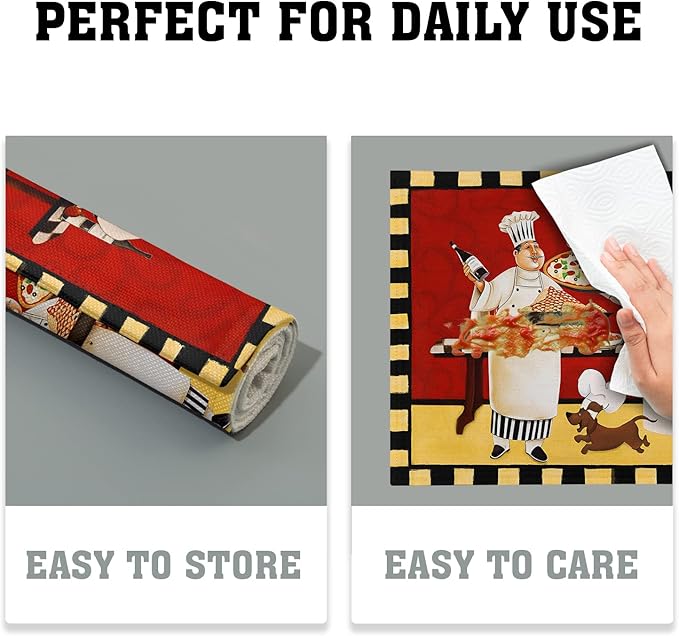 - Durable Material: The fat chef placemat is crafted from superior linen texture which is thick, firm and wear-resistant, crease-resistant and heat-resistant fabric.