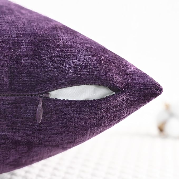 CaliTime Throw Pillow Covers Decorative 16 X 26 Inches Pack of 2 Cozy Chenille Cushion Cases for Couch Sofa Bed Living Room Home Plum Purple