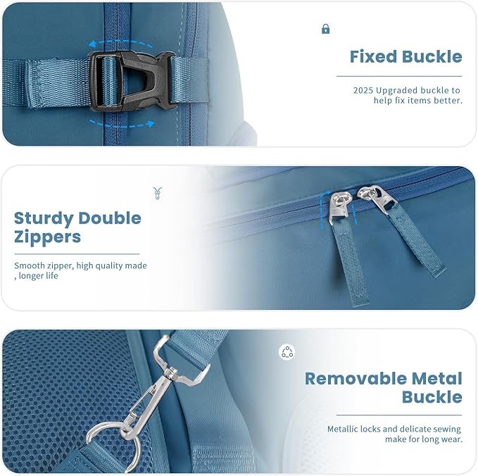 - Easier Packing: Features with 180 degree opening and enough depth of the interior space, this traveling backpack enables you to pack it almost like a suitcase. And the side buckles will be helpful to compress the backpack when you overpack it