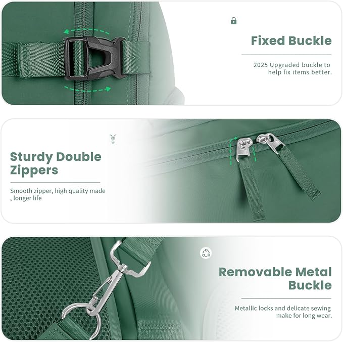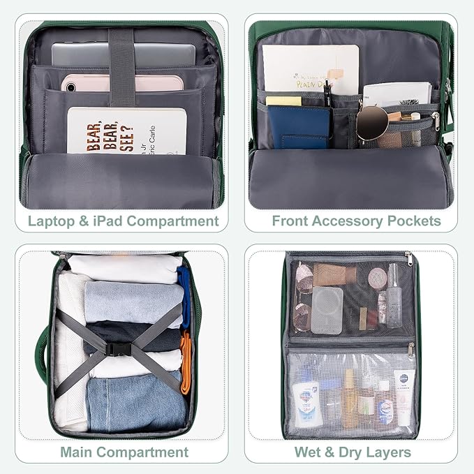 - Easier Packing: Features with 180 degree opening and enough depth of the interior space, this traveling backpack enables you to pack it almost like a suitcase. And the side buckles will be helpful to compress the backpack when you overpack it