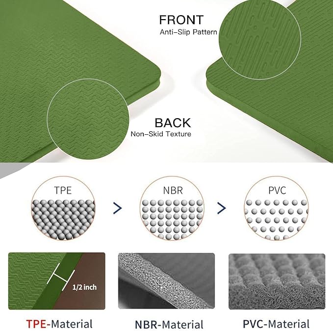 - Extra Large and Extra Thick: Our yoga mat measures 72"x 48" and boasts a thickness of 1/2 inch, offering ample room and superior comfort.Mat with a thickness of 1/2 inch can relief from joint pain during floor.