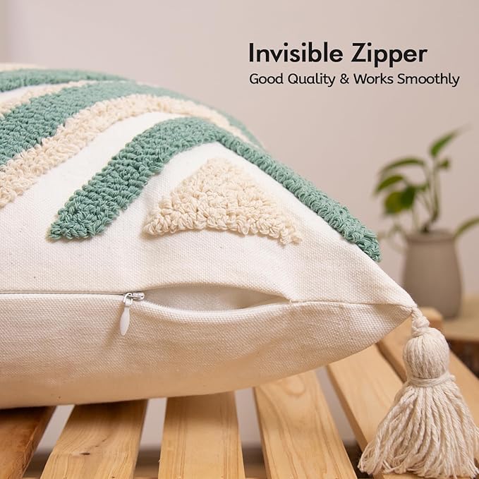 - 【FABRIC AND SIZE】The front of this boho couch pillow cover is made of polyester. Measures 18x18 inches.Exquisite workmanship enables tufting part dense soft and aesthetic.The 2D effect with the tufting technic makes these abstract pillow covers so distinctive.