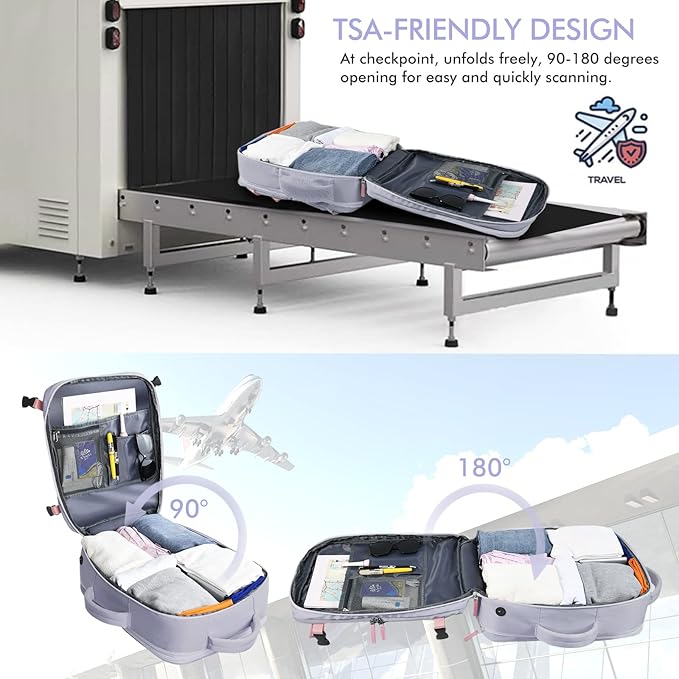 - 【Flight Airline Approved Personal Item Bag】This portable carry-on backpack is designed for travel, meets flight approved dimensions and can be placed as a personal items bag on the top of the aircraft or under the seat. This backpack can open between 0-180 degrees, helping you get through airport security easily and quickly. Meet the carry-on requirements of most airlines (Backpack net weight: 2.2 lb)