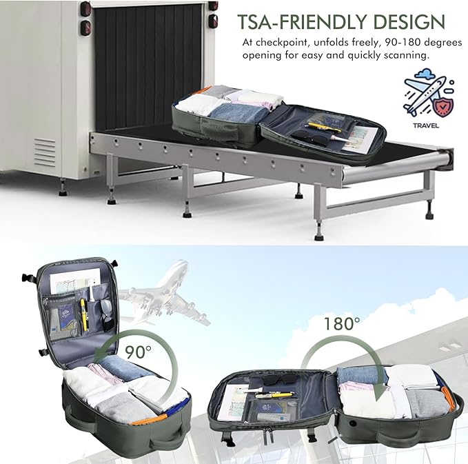 - 【Flight Airline Approved Personal Item Bag】This portable carry-on backpack is designed for travel, meets flight approved dimensions and can be placed as a personal items bag on the top of the aircraft or under the seat. This backpack can open between 0-180 degrees, helping you get through airport security easily and quickly. Meet the carry-on requirements of most airlines (Backpack net weight: 2.2 lb)