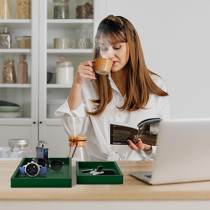 BBK Bathroom Vanity Tray- 2 Pack (7.8" and 11.8") Silicone Bathroom Tray for Counter, Perfume Key Trinket Ring Tray, Decor Soap Dispenser Countertop Tray for Kitchen Sink Organization.(Green)