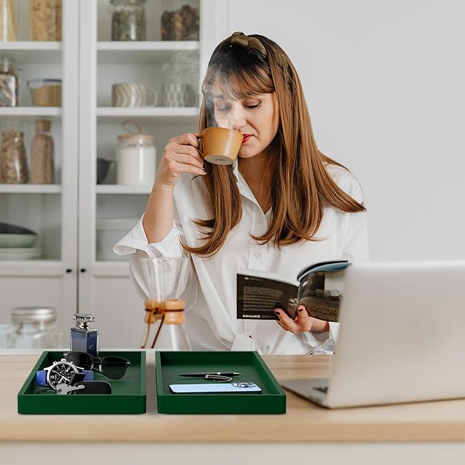 BBK Bathroom Vanity Tray 11.8 in- 2 Pack(Large) Silicone Bathroom Tray for Counter, Perfume Key Trinket Ring Soap Dispenser Countertop Tray for Kitchen Sink Organization (Green)
