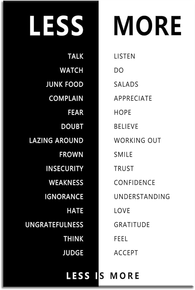 Less is More Inspirational Print Wall Art for Office Less and More Motivational Picture Inspiring Poster Painting Modern Artwork for Home Bedroom Living Room Office Decor Frame[12''W X 18''H]